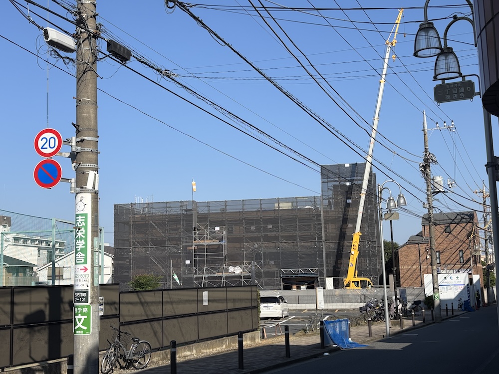 手前は駐車場なので駅から来ると建物がよく見えるのですが、つい最近駐車場が廃止に…。